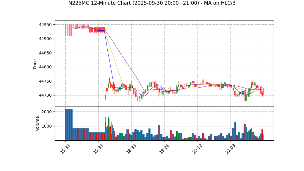 09-30 21:00 | 44730.00 | 44730.00 | 44690.00 | 44710.00 | 1550 | 44984.75 | 31.3 | -36.352 | 1.00 |