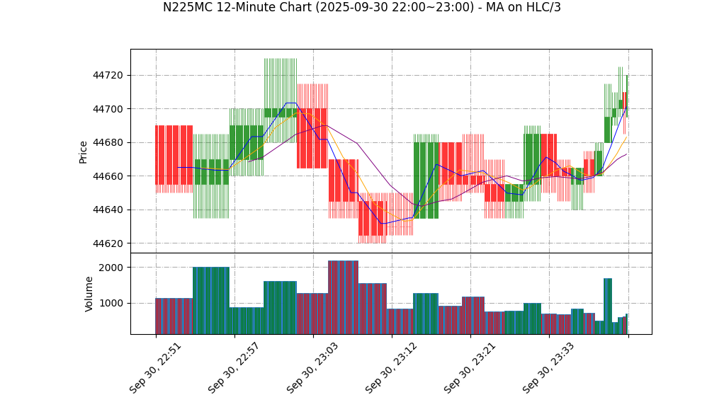 09-30 23:00 | 44695.00 | 44715.00 | 44695.00 | 44705.00 | 296 | 44938.50 | 31.7 | -28.397 | 2.00 |