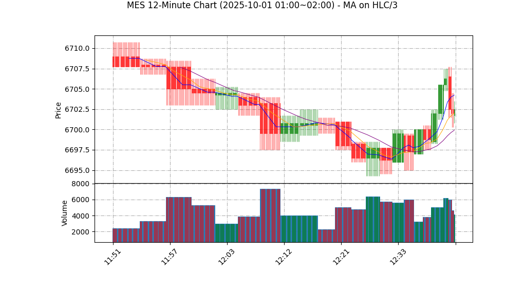 – 支撑阻力:近期直接支撑位首选 6700(整数关口)、下方次级支撑 6690;阻力位以MA20附近 6707.95 为短期阻力,上一小时高点 6703 可视为短线阻力带上沿。