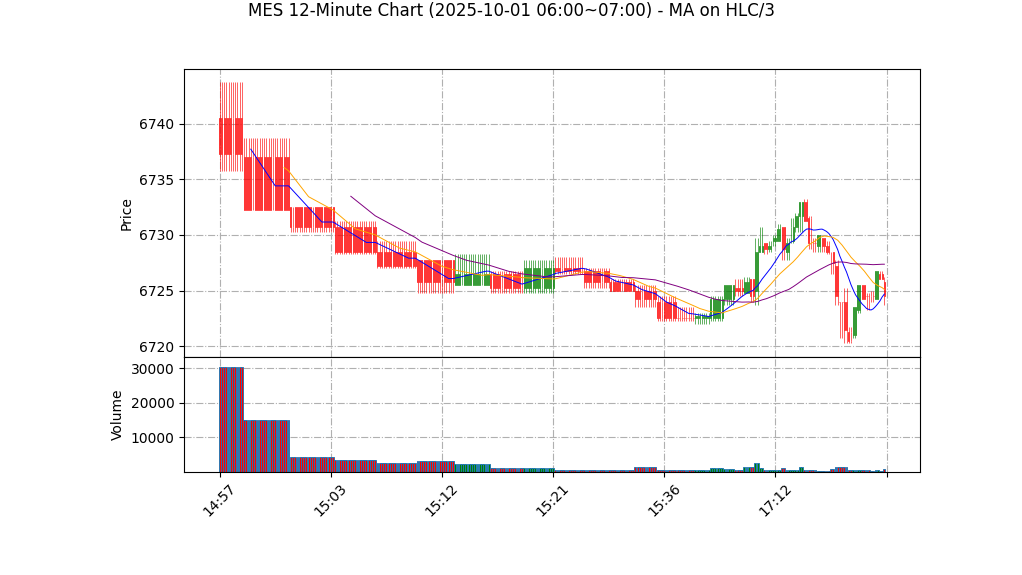 – 支撑位:短期支撑在MA20附近 ~6710-6712,次级支撑看近低点 ~6720.25(本周期低点)。若回踩并守住MA20,则多头有效。