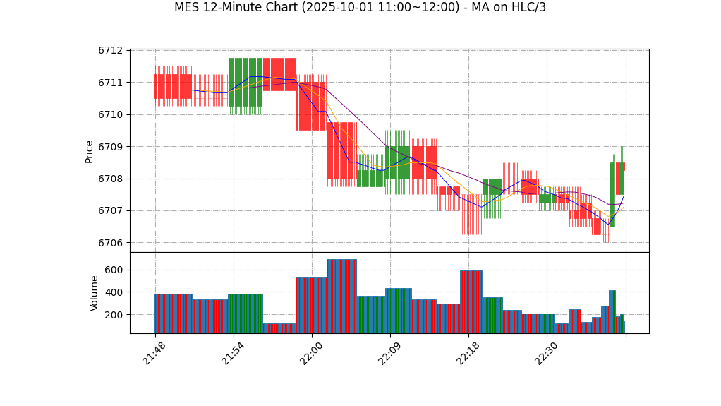 – MA20(6711.70) vs 收盘(6708.25):价格位于MA20下方,短期均线提供阻力,显示短期偏空结构。信号强度:中等(权重30%)。