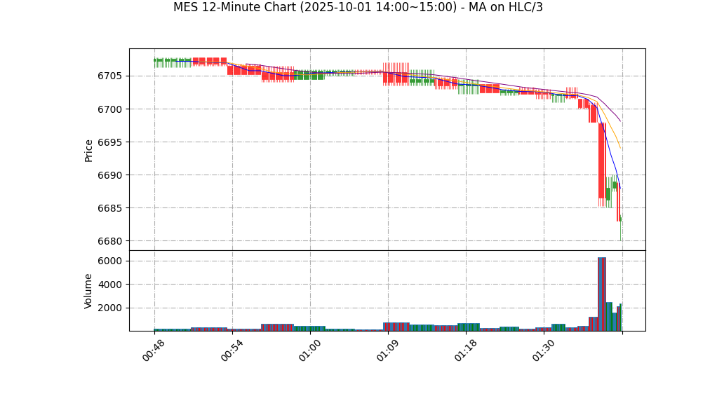 – 支撑/阻力:短期支撑 ~6680-6682(当下低点和心理整数位);首要阻力 ~6711-6716(MA20及其附近阻力区)。若价格上破并稳住于6715以上,短期趋势转为中性偏多;若跌破6680并放量,则确认延续空头。