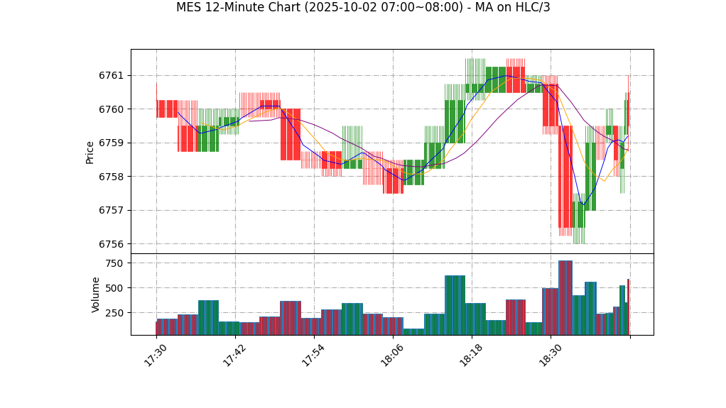 – 形态:当前仅有单条K线数据(开=高=低=收=6759.75,或接近钝形),无法识别清晰K线形态或持续性图形,故短线形态判断受限。