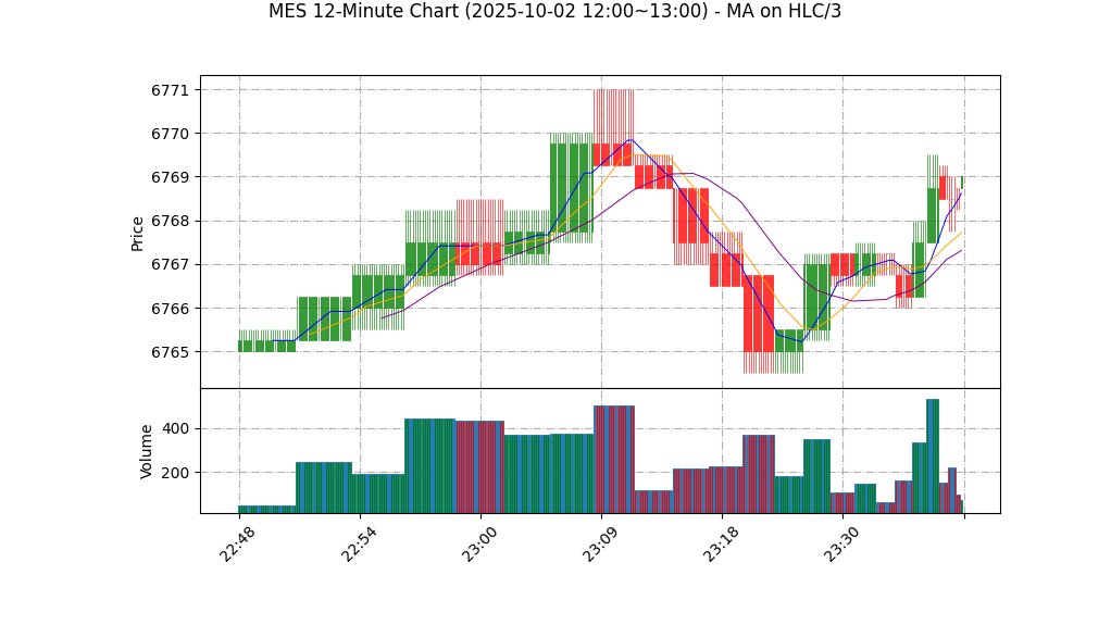 – 价格相对于MA20(价格6768.75 > MA20 6742.89,权重20%):价格略高于20期均线,存在轻微上行倾向,但幅度仅约0.38%,不足以证明强趋势。信号强度:微多。