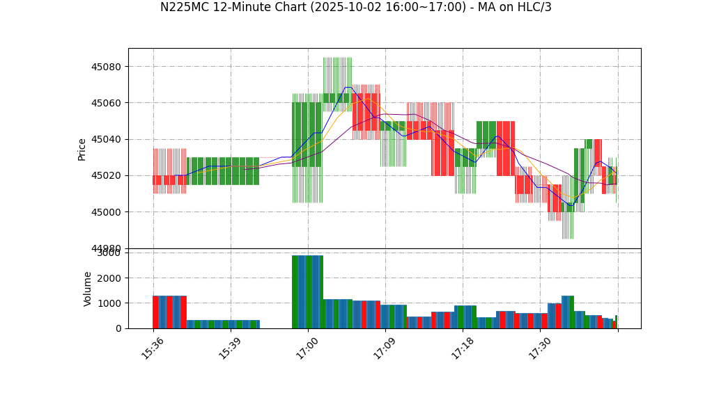 10-02 17:00 | 45025.00 | 45025.00 | 45015.00 | 45020.00 | 153 | 44858.00 | 58.5 | 26.028 | 1.00 |