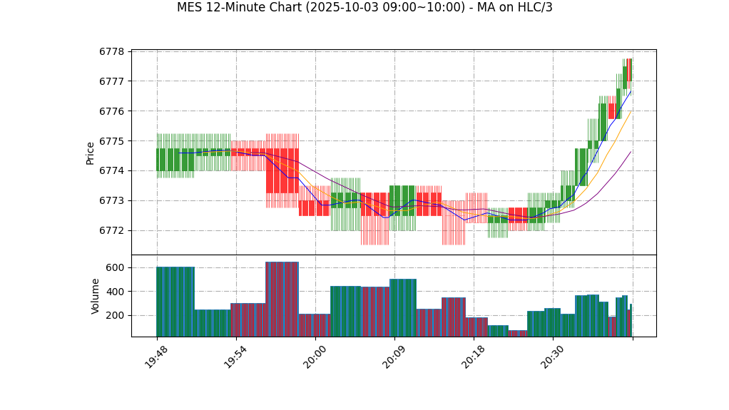– 价格 vs MA20(价格6777.00,MA20=6767.80,权重25%):价格略高于MA20(约+9.2点,≈0.14%),短期均线支撑存在但幅度极小,属于温和多头排列。