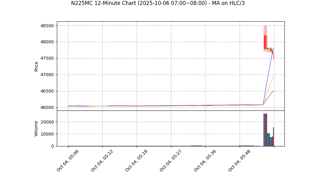 10-06 08:00 | 47635.00 | 47650.00 | 47500.00 | 47515.00 | 6628 | 46122.75 | 82.1 | 118.842 | -1.50 |