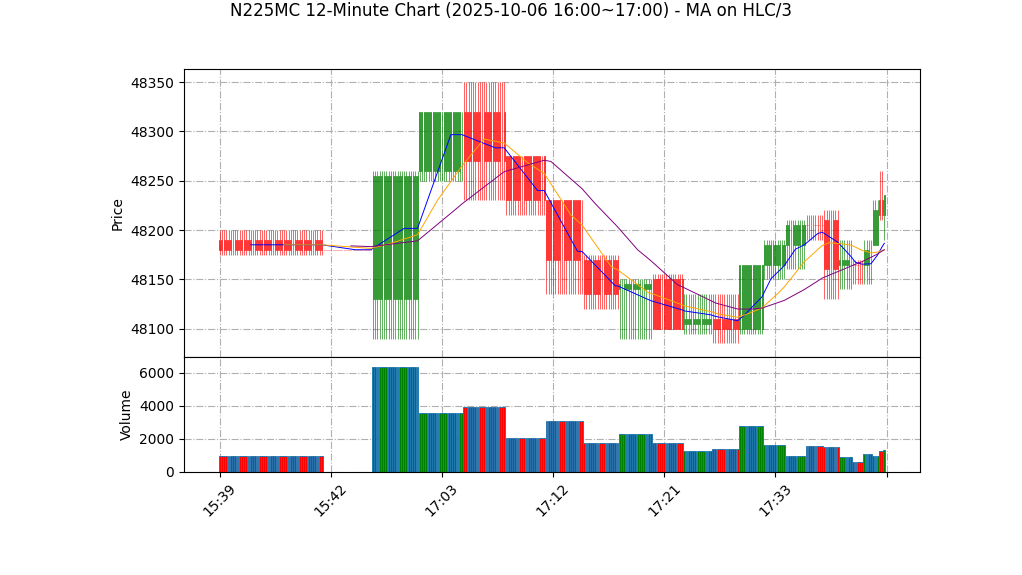 10-06 17:00 | 48215.00 | 48225.00 | 48200.00 | 48205.00 | 553 | 46968.75 | 83.4 | 100.682 | -3.50 |