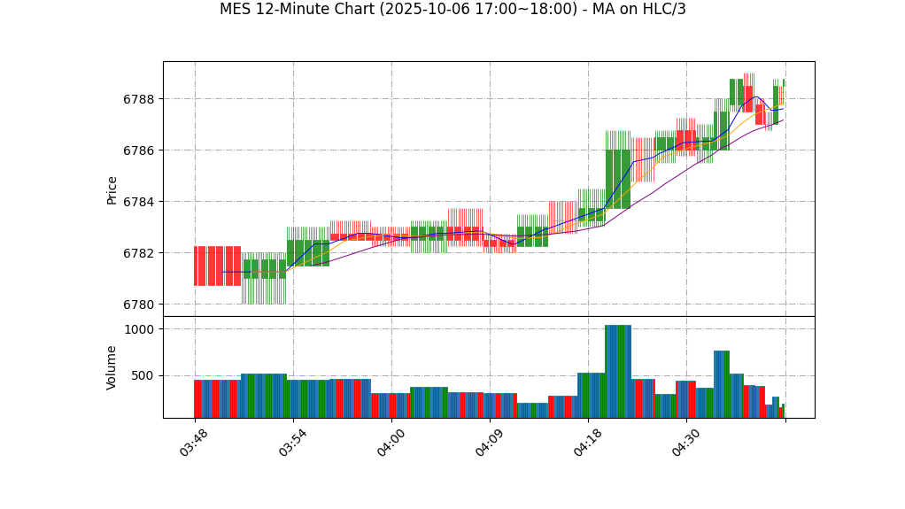 – 价格结构:当前收盘6788.75,接近盘中高点,短线未形成明显回撤或高位放量突破,属于“稳步上移且振幅极小”的状态。