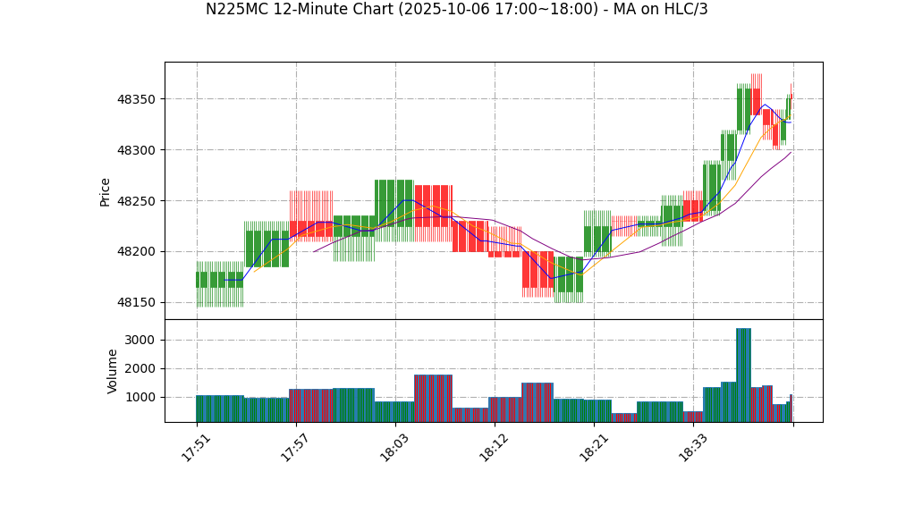 10-06 18:00 | 48355.00 | 48365.00 | 48345.00 | 48355.00 | 626 | 47083.50 | 84.6 | 87.913 | -3.50 |