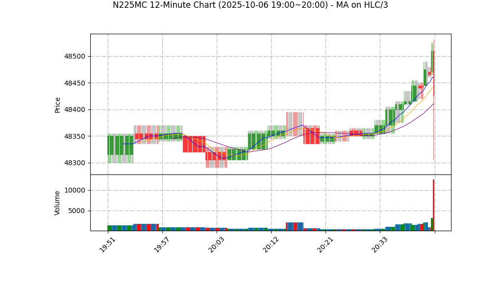 10-06 20:00 | 48510.00 | 48530.00 | 48305.00 | 48355.00 | 9382 | 47319.00 | 83.8 | 48.294 | -3.50 |