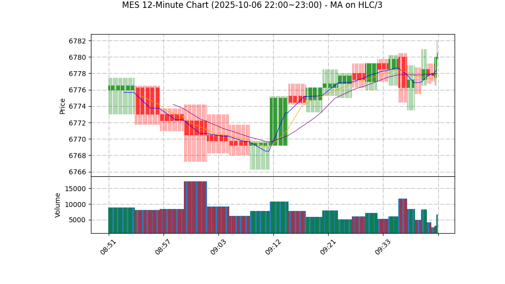 当前单根K线区间极窄(最高6780.25 最低6779.25),波动极小,呈盘整小区间。短期支撑位:近期最低附近 6779.25(若跌破并放量则确认下破);次级心理支撑可参考 6770、6760 区域。短期阻力位:MA20 6780.52 与近期最高 6780.25(若收复并稳住则有利多方);上方更强阻力 6788-6795 区间。总体形态为低波动横盘,未见明确单边趋势延续形态(无明显突破、无持续放量),趋势强度偏弱。