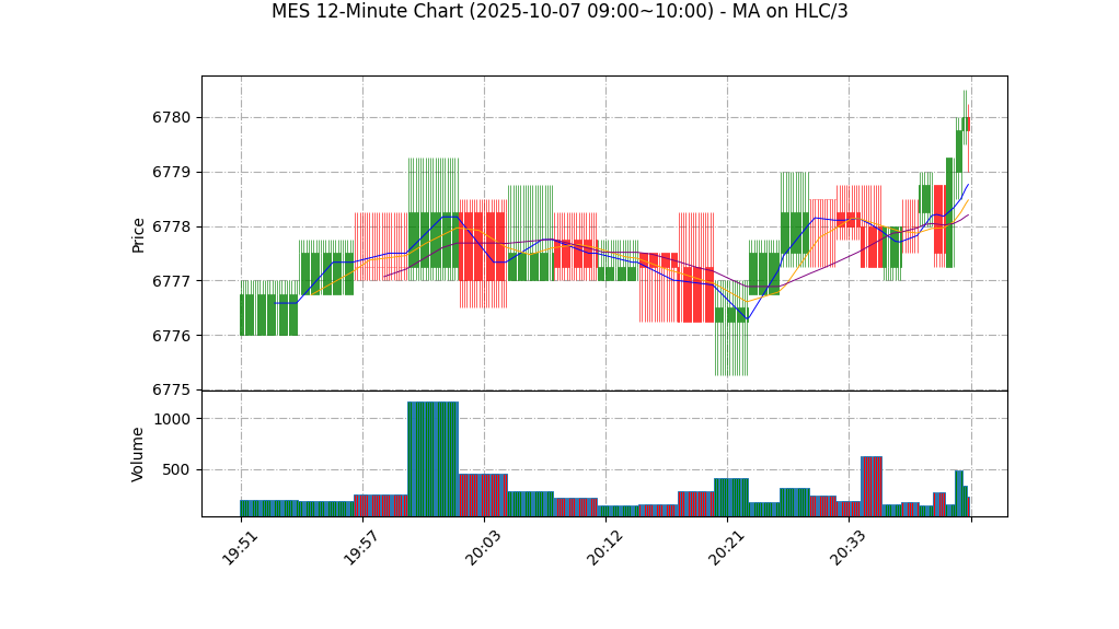 – 形态:当前数据无法构建可靠的形态(缺乏连续K线与高低点),但单点范围极窄(最高6780 最低6779.75),典型盘整/窄幅震荡。