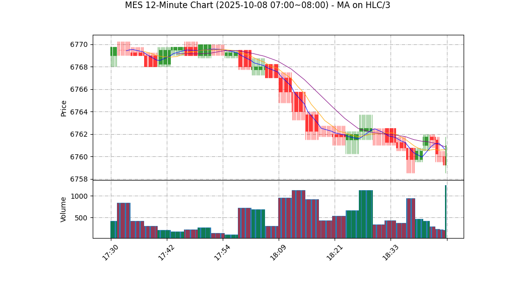 RSI均值为39.3,处于中性偏空区间(超卖参考30以下),信号强度中等,暗示潜在卖压但未极端;MACD柱为-1.960,动量偏空,信号强度弱,因多头时间占比为0%;MA20(6775.65)高于当前价格(6759.25),权重分配高,确认短期偏空趋势;趋势一致性100%基于单一数据点,可靠性低,综合权重分配:MA20(40%)、RSI(30%)、MACD(30%),整体信号偏空但强度有限。
