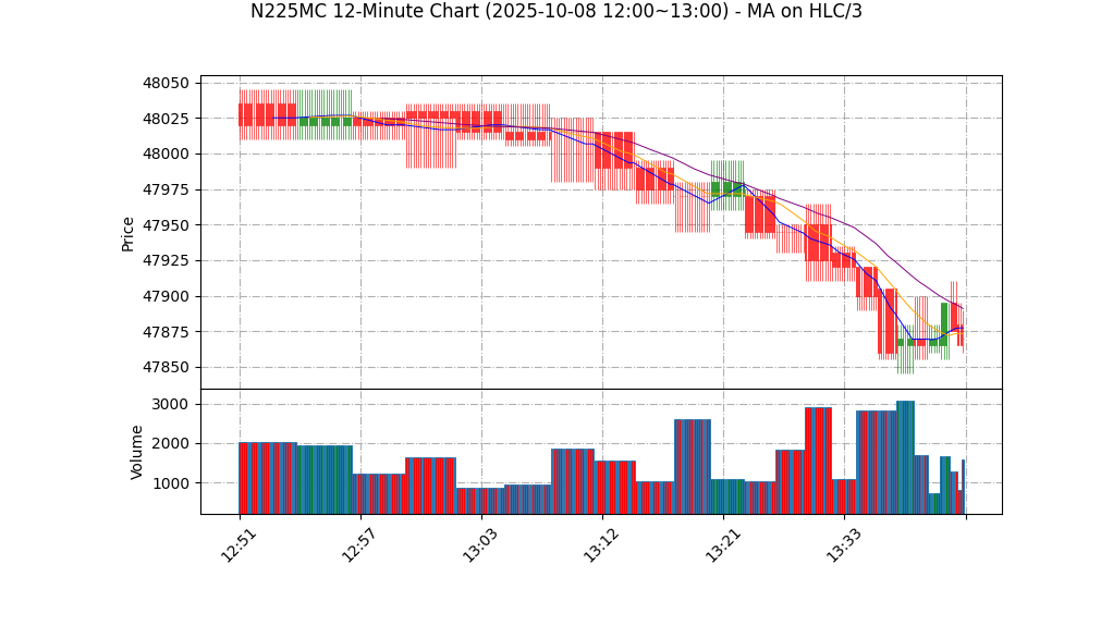 10-08 13:00 | 47870.00 | 47890.00 | 47860.00 | 47880.00 | 609 | 48038.25 | 42.5 | -29.014 | -3.75 |