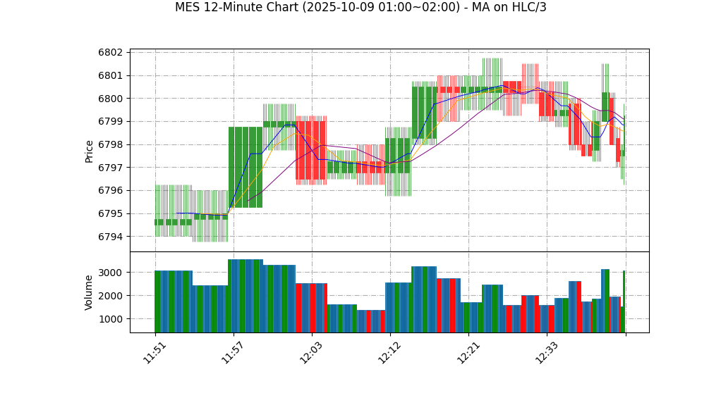 价格在6797.25-6799.25极窄区间内波动,形成横盘整理形态;支撑位在6797.25(近期最低点),阻力位在6799.25(近期最高点)。趋势强度弱(波动率0.00%),无明确突破信号,MA20提供轻度上升支撑,但缺乏成交量或形态确认,趋势持续性存疑。