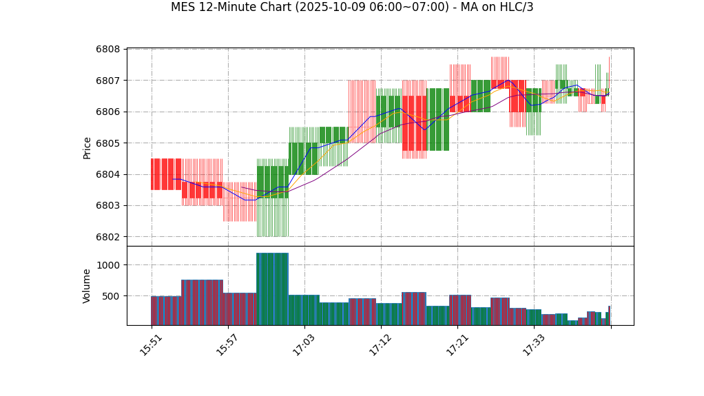 1) 形态:近10小时数据不完整,无法确认清晰趋势线或连续K线形态。当前价格在短期均线之上但接近高点(最高6807),显示短期顶部企稳迹象。