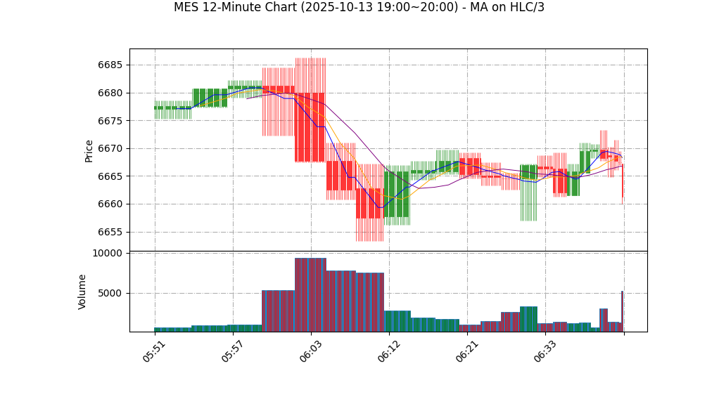 – 支撑阻力:短期即时支撑位:6663.25(日内低)及MA20 6663.36;次级支撑建议关注 6660(心理/预留)。短期阻力位:6667.25(日内高)及附近心理位 6670;上方若突破并放量,可看向 6676-6684 区间作为短期目标。