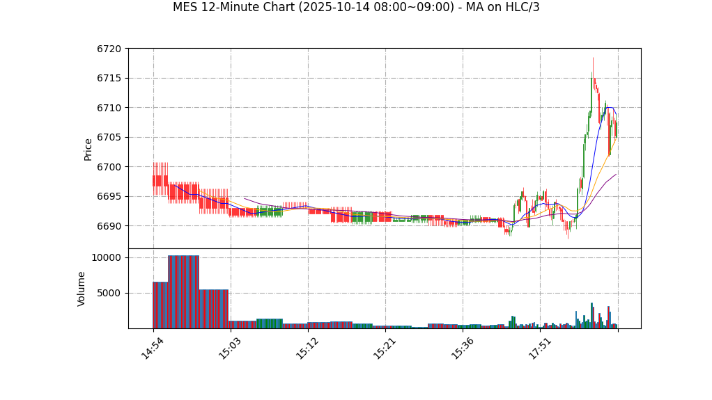 – 价格结构:近10小时内价格区间极窄(最高6710.50、最低6701.75、收盘6707.75),呈窄幅整理/箱体。短期阻力位:6710.5(近高);短期支撑位:6701.75(近低)与MA20≈6689作为次级支撑。