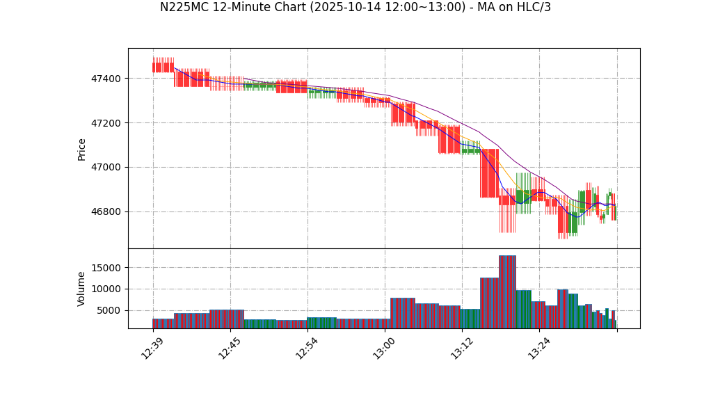 10-14 13:00 | 46880.00 | 46880.00 | 46760.00 | 46805.00 | 7262 | 47040.25 | 42.8 | 38.984 | -2.75 |