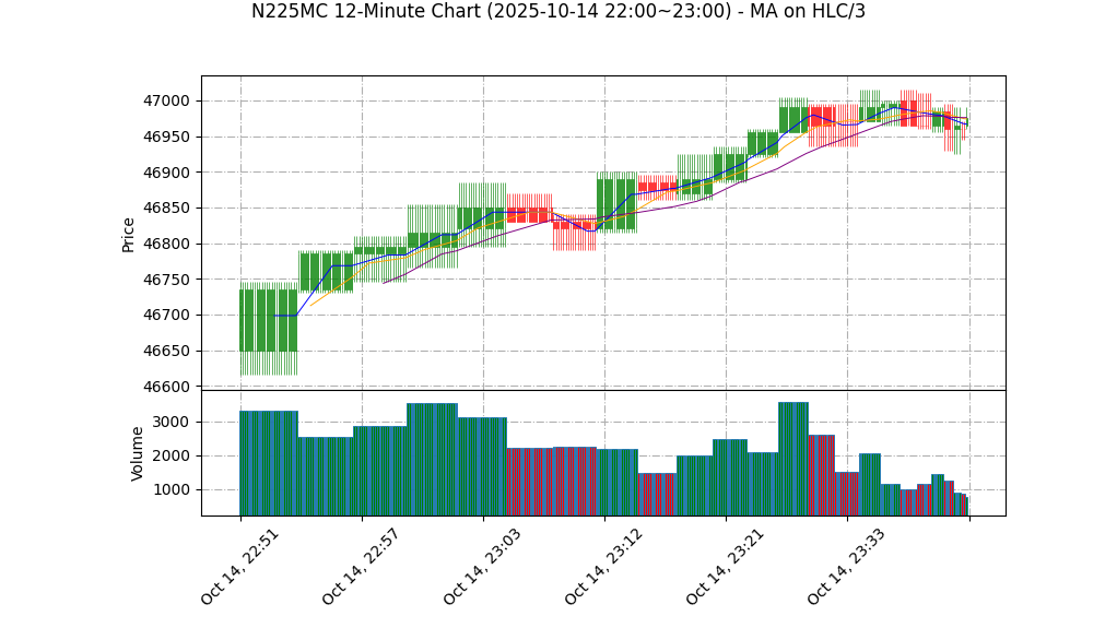– 形态:可视为窄幅区间震荡(近一条可用K线:高46985、低46960、收46980),无明显突破或连续趋势形态。