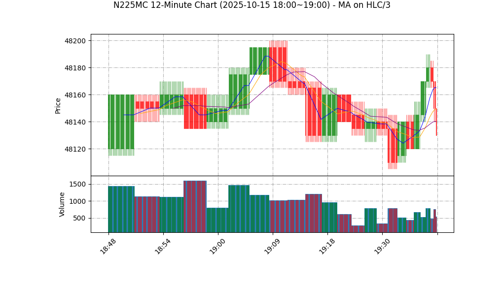 10-15 19:00 | 48135.00 | 48145.00 | 48125.00 | 48135.00 | 709 | 47392.25 | 73.3 | 100.168 | -2.25 |