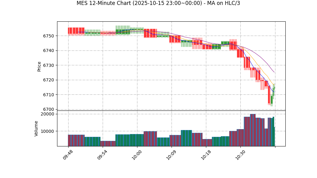 – 形态:基于唯一可用K线(开6715.50 高6716.25 低6714.50 收6715.25),当前区间极窄,未形成明确突破、假突破或反转形态;更像横盘微涨的窄幅区间。