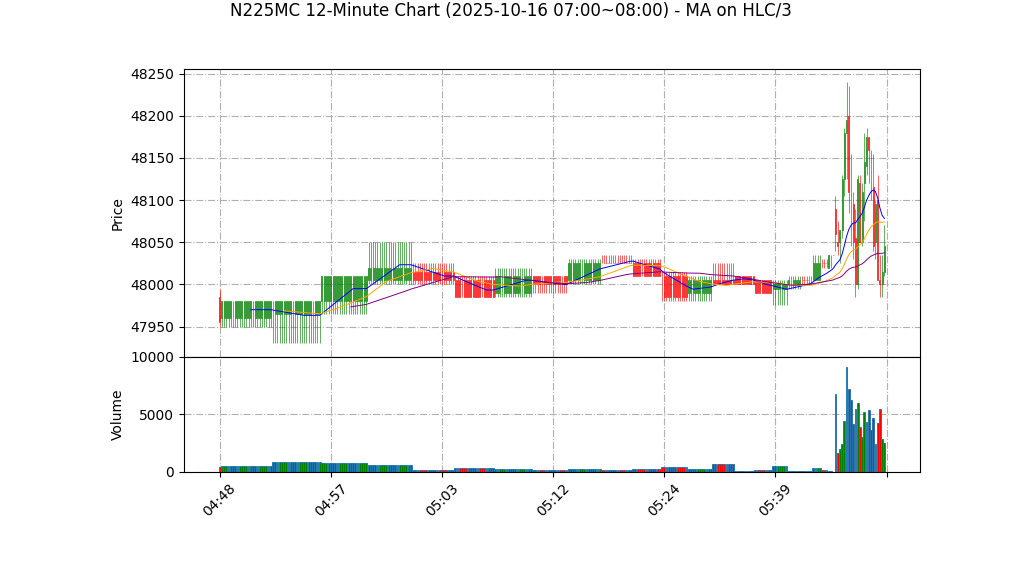 10-16 08:00 | 48180.00 | 48240.00 | 47985.00 | 48060.00 | 87580 | 47946.50 | 60.7 | -24.589 | -0.50 |