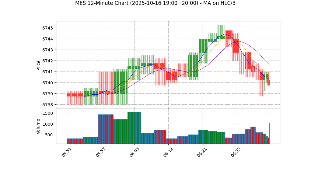 – 当前区间非常窄:近期最高 6740.25,最低 6739.50,收盘 6739.75,表明短线震荡范围极小(几乎无波动)。