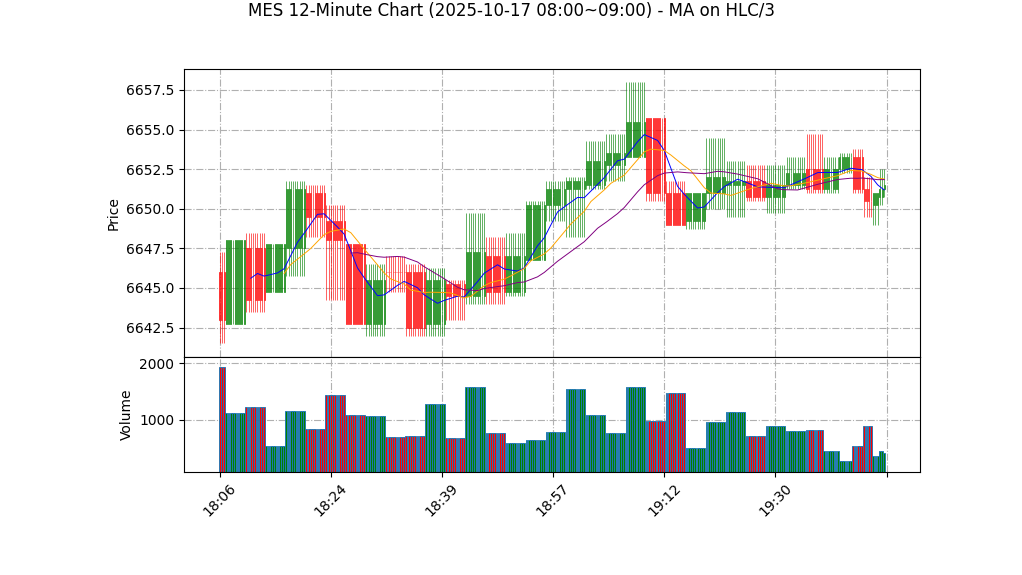 – 价格行为(单根窄幅K线:开6651.75 高6653.00 低6651.50 收6652.25):极小波幅、十字性质,显示短期市场高度犹豫或做盘等待消息。信号强度:中性(权重 10%)。