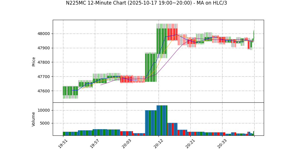 10-17 20:00 | 47960.00 | 47980.00 | 47945.00 | 47955.00 | 753 | 47871.25 | 52.7 | -12.706 | 2.25 |