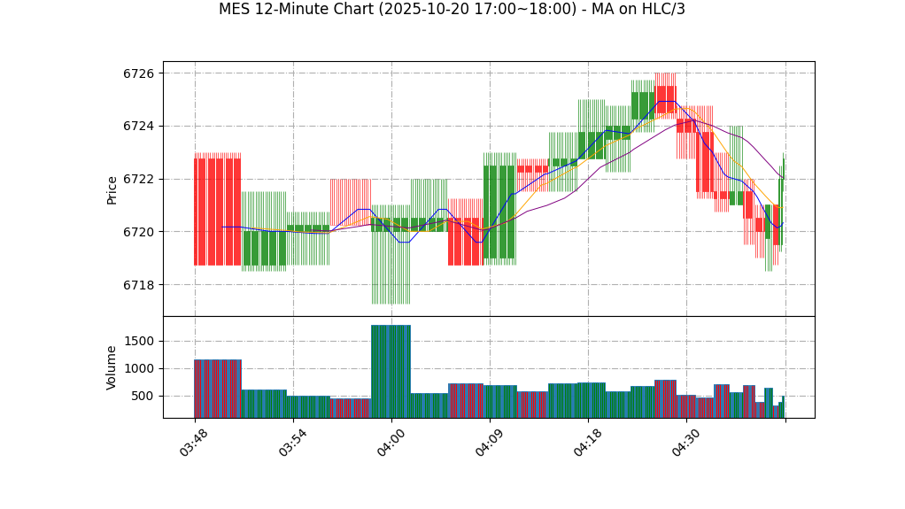 – MA20(6708.93)与当前价(6723.25):价格位于MA20上方,短期上方偏多但距离不大,表明短期均线上行但强度弱,权重中等(权重 25%)。