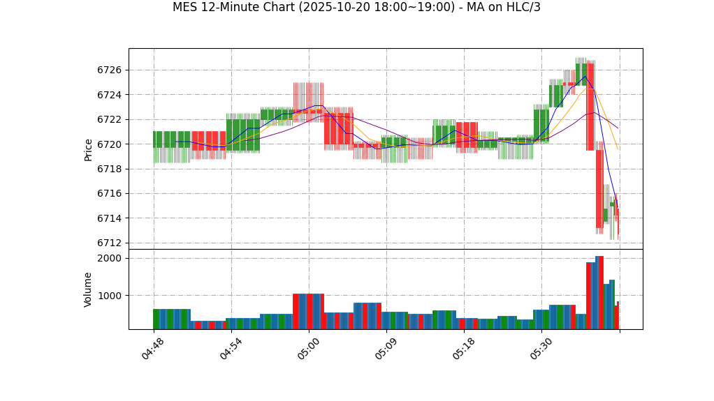 – 支撑阻力:短期支撑位可参考20期均线及当日低点:约 6711.7(MA20)和 6711.50(当日最低);短期阻力参考当日高/收盘 6712.50,若出现更高价位需重新判定。