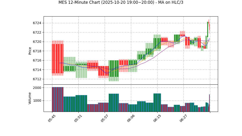 – 支撑位:短线技术支撑首选MA20 ~6714.0,次级心理支撑位约6710,若跌破并收盘于其下,则短线偏空概率上升。