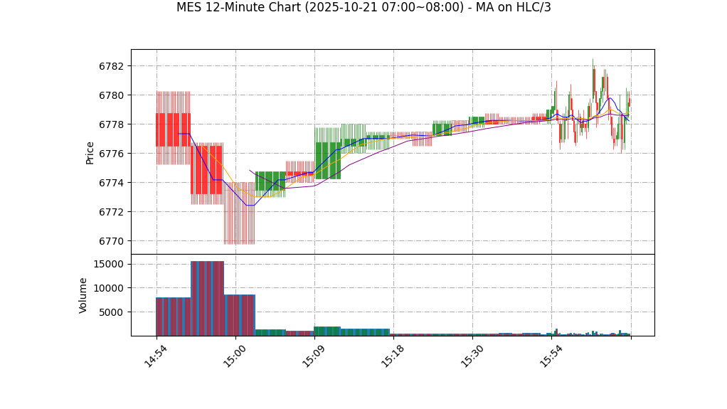 – 近期价格行为(100%可用数据缺失,仅一条记录)显示收盘 6778.50,最高 6780.50,最低 6776.00,区间极窄,属于高位窄幅盘整/射击之形态。
