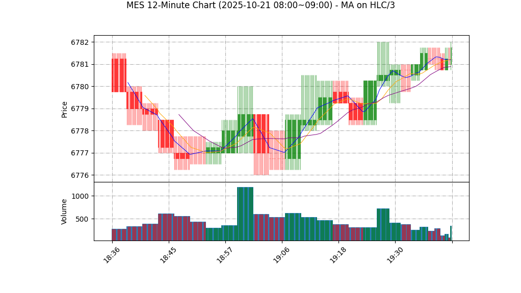 – 形态:当前仅有一小时数据,K线为极小实体(开=高=6782.00,低6781.25,收6781.50),类似顶端犹豫/十字线,常见于上升尾声或短期震荡起点。