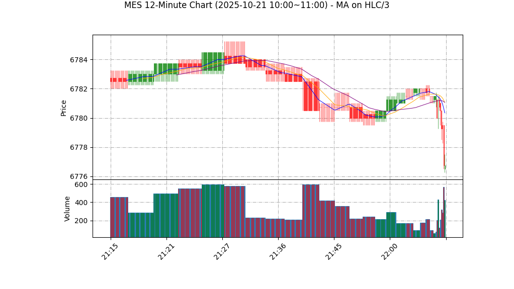 – 价格 vs MA20(6780.50 vs 6756.93,价格高于MA20 ≈ +23.57点)——信号强度:中等。含义:短期均线处于支撑,但超出幅度有限,显示多头仍在但强度不高。权重:20%。
