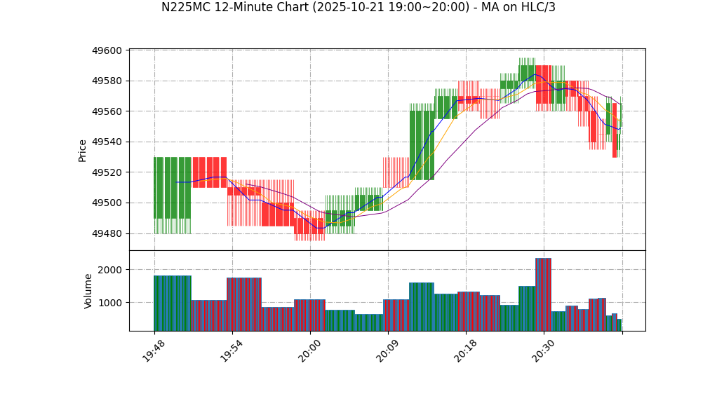 – 近期价格区间窄幅震荡(高49575 / 低49555),多空胶着,未形成明确趋势延续形态(无明显突破、无连续高低点下移/上移)。