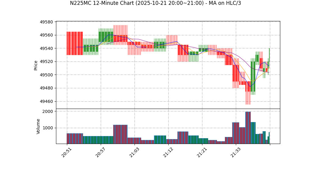 10-21 21:00 | 49520.00 | 49525.00 | 49510.00 | 49515.00 | 245 | 49620.25 | 54.3 | -66.242 | -0.50 |