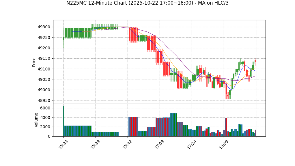 10-22 18:00 | 49140.00 | 49150.00 | 49130.00 | 49135.00 | 760 | 49297.50 | 45.9 | -21.113 | -0.75 |