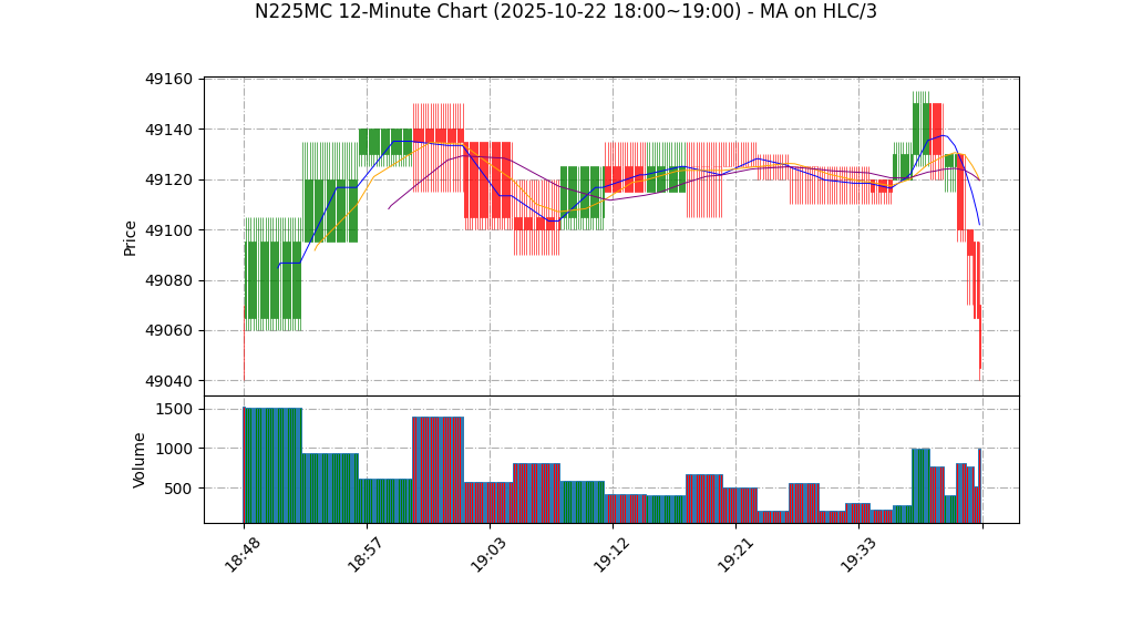 10-22 19:00 | 49070.00 | 49095.00 | 49065.00 | 49090.00 | 391 | 49273.50 | 44.7 | -22.539 | -3.75 |