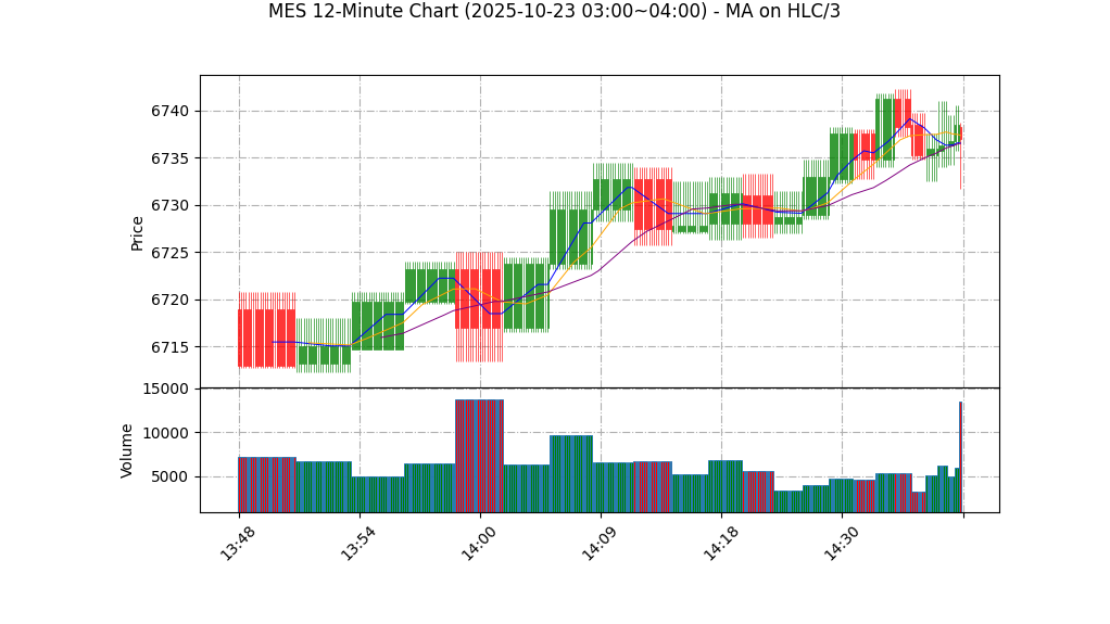 – 价格结构:仅有一条最新K线(高6739.00、低6736.75、收6739.00),收盘接近小时高点但仍低于MA20,显示短线有小幅反弹但阻力未被突破。