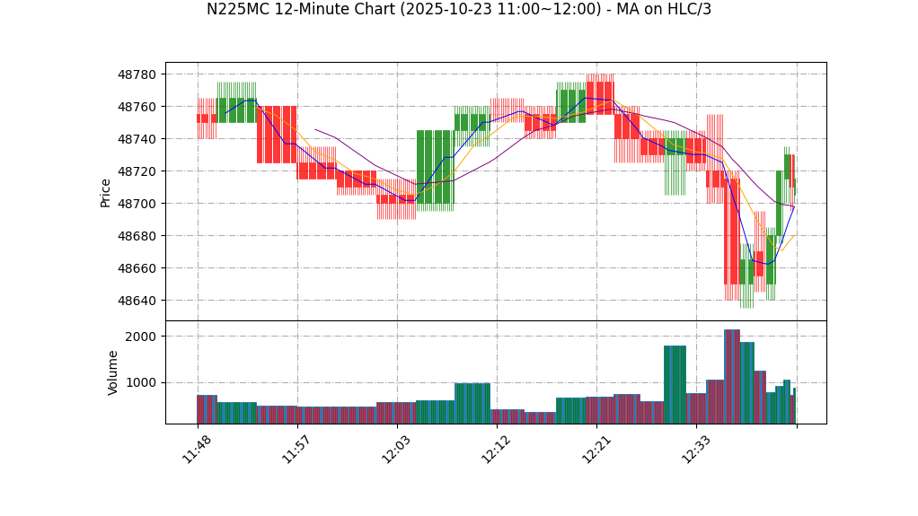 10-23 12:00 | 48705.00 | 48725.00 | 48700.00 | 48710.00 | 385 | 48887.50 | 42.1 | -2.477 | -1.00 |