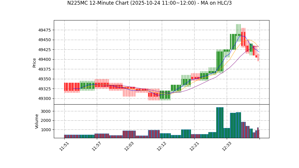 – 价格行为:最新K线为十字/平盘(开49400 收49400 高49405 低49395),显示多空力矩接近平衡,短期无明显趋势延续。