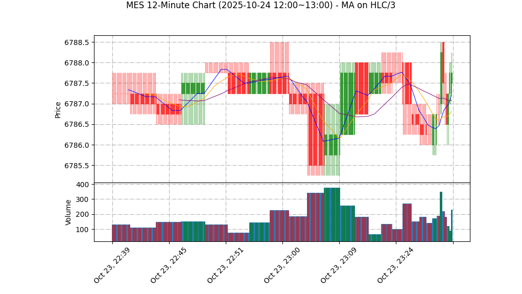 价格走势呈现窄幅震荡形态,10小时累计变化为0.00%,缺乏明确趋势。支撑位初步设定在MA20(6767.02),阻力位在当前高点6788.00附近。趋势强度弱,因波动率极低(0.00%)和价格紧贴区间,未形成突破或反转形态,这支持震荡偏空的判断。