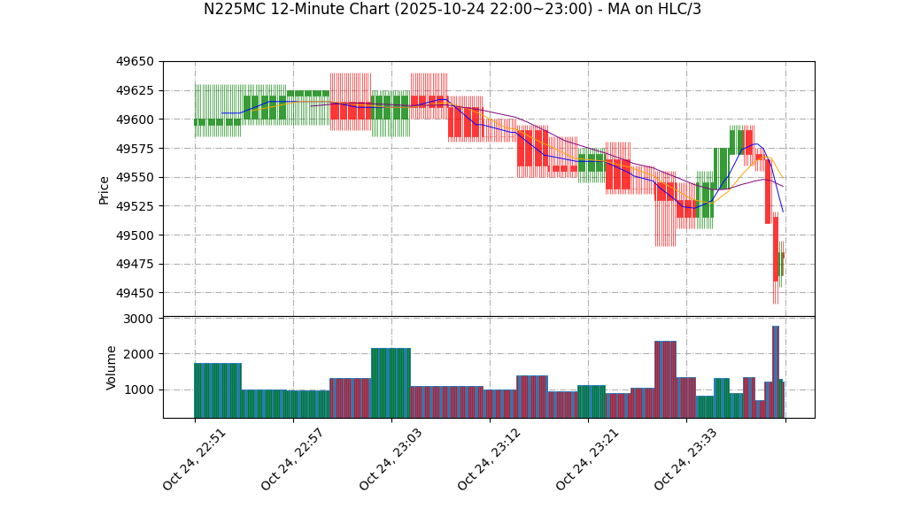 | 10-24 23:00 | 49485.00 | 49495.00 | 49470.00 | 49485.00 | 505 | 49293.00 | 61.1 | 17.319 | 1.00 |