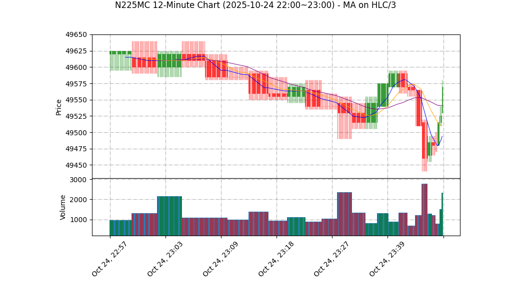 | 10-24 23:00 | 49485.00 | 49495.00 | 49470.00 | 49485.00 | 505 | 49293.00 | 61.1 | 17.319 | 1.00 |
