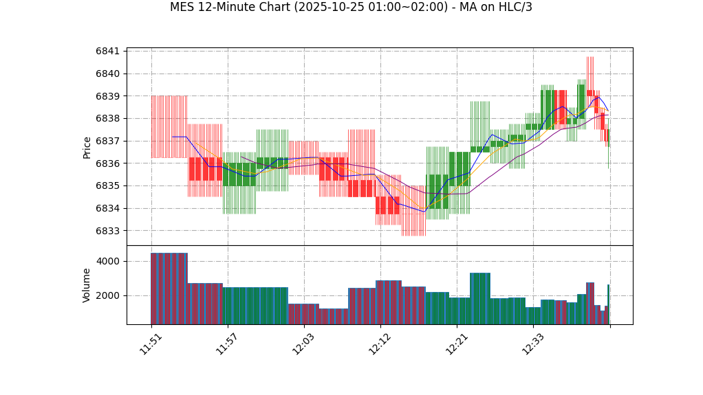 – 价格结构:近10小时记录有限,仅见极小振幅(开6836.75,高6837.00,低6835.75,收6836.00),显示当前短周期价格接近盘整区间,缺乏扩展趋势。