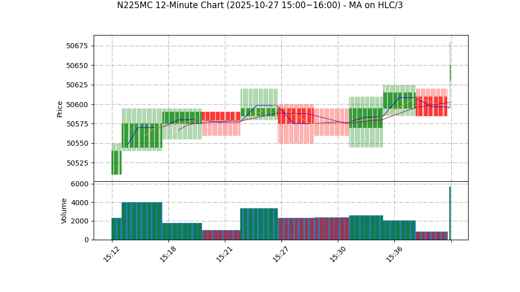 | 10-27 16:00 | 50630.00 | 50655.00 | 50595.00 | 50655.00 | 3231 | 49886.50 | 78.5 | 67.163 | 0.50 |
