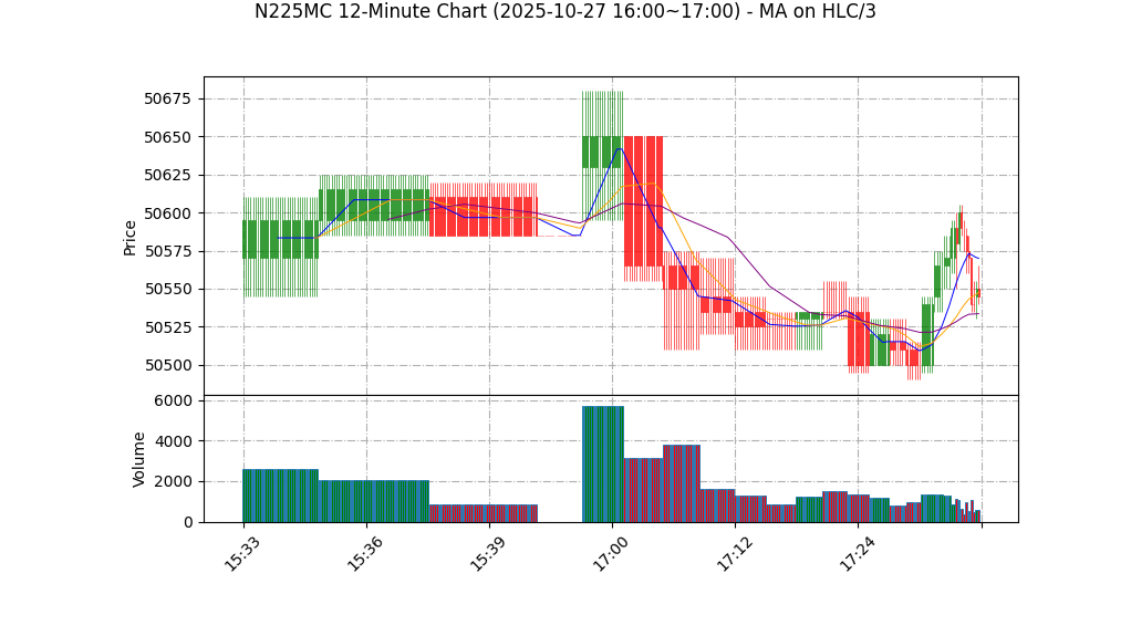 | 10-27 17:00 | 50585.00 | 50590.00 | 50530.00 | 50545.00 | 4380 | 49942.75 | 72.8 | 54.453 | -2.50 |